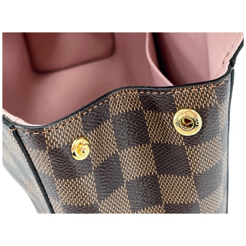 Discover the Louis Vuitton Bond Street BB Damier Ebene Canvas & Taurillon Bag Magnolia, which combines classic luxury with modern design. The robust Damier Ebene canvas in dark brown tones creates a timeless look, while the Taurillon leather trim in Magnolia gives the bag a luxurious, soft texture. The long, detachable shoulder strap is a highlight, allowing you to carry the bag comfortably over your shoulder or as an elegant handbag. The gold hardware adds a shiny accent and the spacious interior offers plenty of room for your essentials.