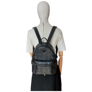 This timeless MCM Stark Backpack in mini size is a real must-have for everyone, who want to combine style and functionality The iconic Visetos canvas in black with the brand’s signature MCM monogram gives the backpack a luxurious yet casual look that goes with any outfit The compact size offers plenty of space for your essentials and is ideal for everyday use or short trips Durable Visetos canvas with leather details ensures long-lasting quality and the rivets add a modern touch canvas with leather details ensures long-lasting quality and the studs add modern accents Inside, you’ll find a padded compartment for tech gadgets and additional compartments for optimal organization Adjustable shoulder straps offer maximum comfort and make the backpack a versatile companion